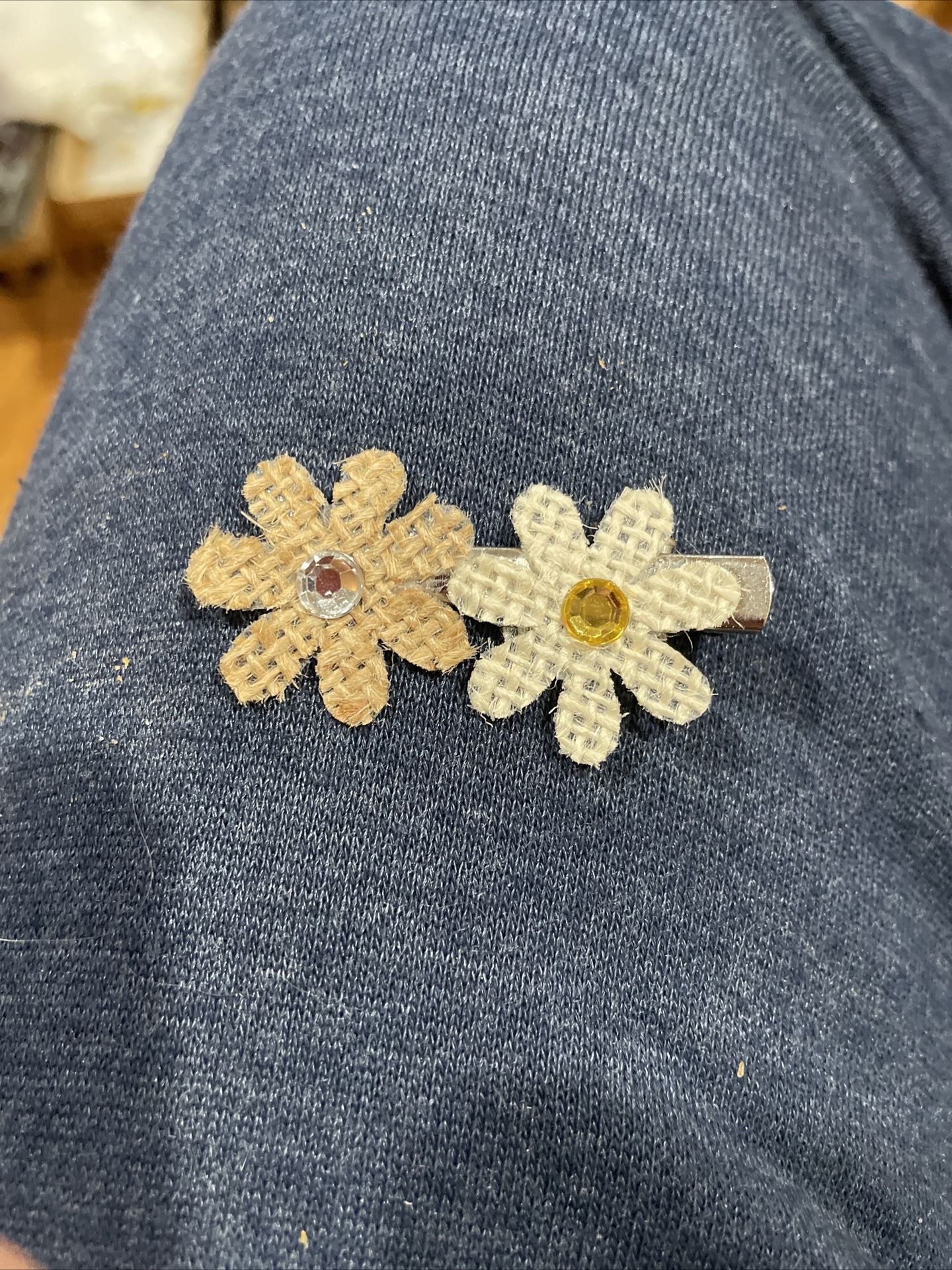 Add a pop of color to your hair with this stunning handmade floral hair clip. Perfect for weddings or casual occasions, this hair clip features a beautiful flower pattern with multicolor fabric material. Suitable for all hair types, this clip is a must-have accessory for women and teens alike. Its unique flower shape and theme will make you stand out from the crowd. This hair clip is perfect for those who appreciate handmade items and want to add a touch of beauty to their hair. Craft fair Probably a child first craft project Landrun Lane Arlington 76017