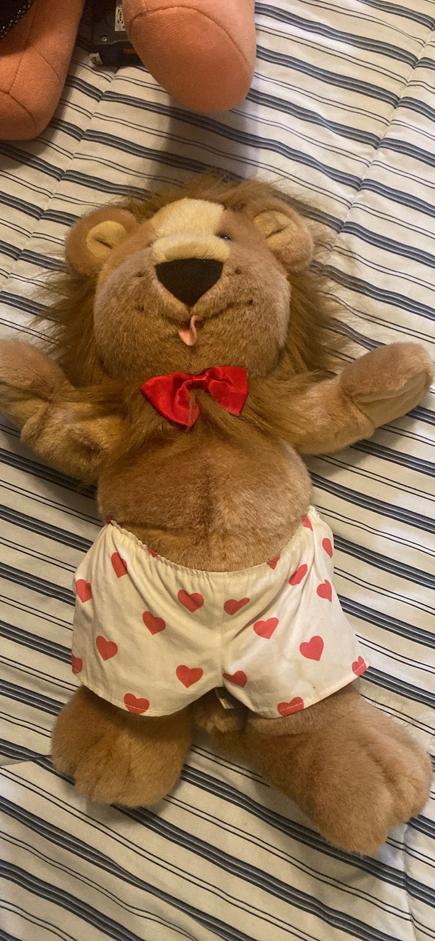 VTG Applause Mary Meyer Sitting Lion Plush Toy Red Bow Seated Stuffed Animal 16”