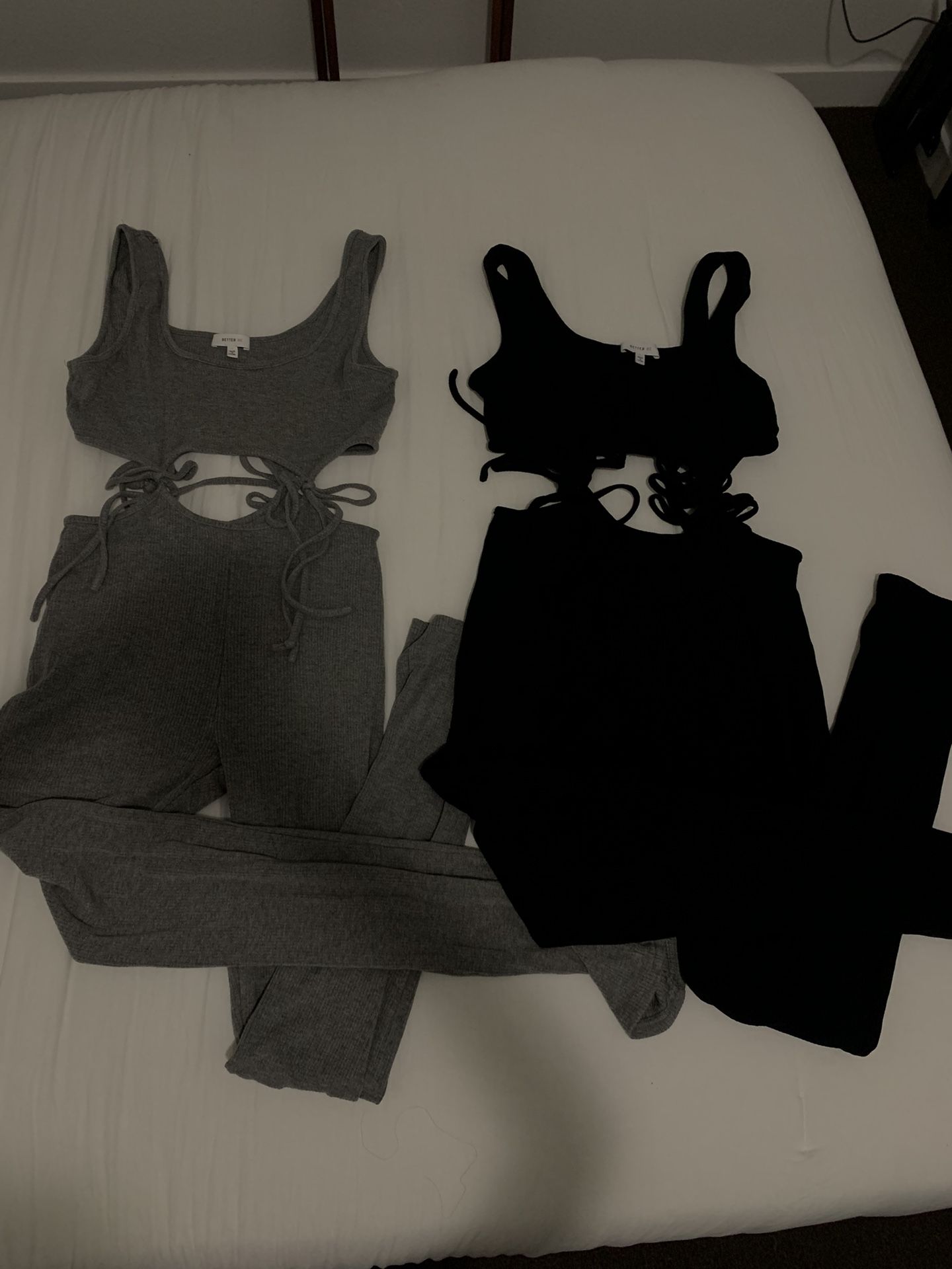 Stylish BETTER BE ribbed cutout jumpsuit Comes with cutout sides and tie details. It’s a super comfy one-piece outfits. ONLY GRAY AVAILABLE!