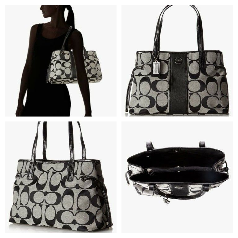 COACH Handbag $ 35.00 Pick up inHubbard The bag has a rip on the bottom front black strip as shown on 4th photo. The straps are a bit quartered as seen in collage. The damage is not very noticeable.