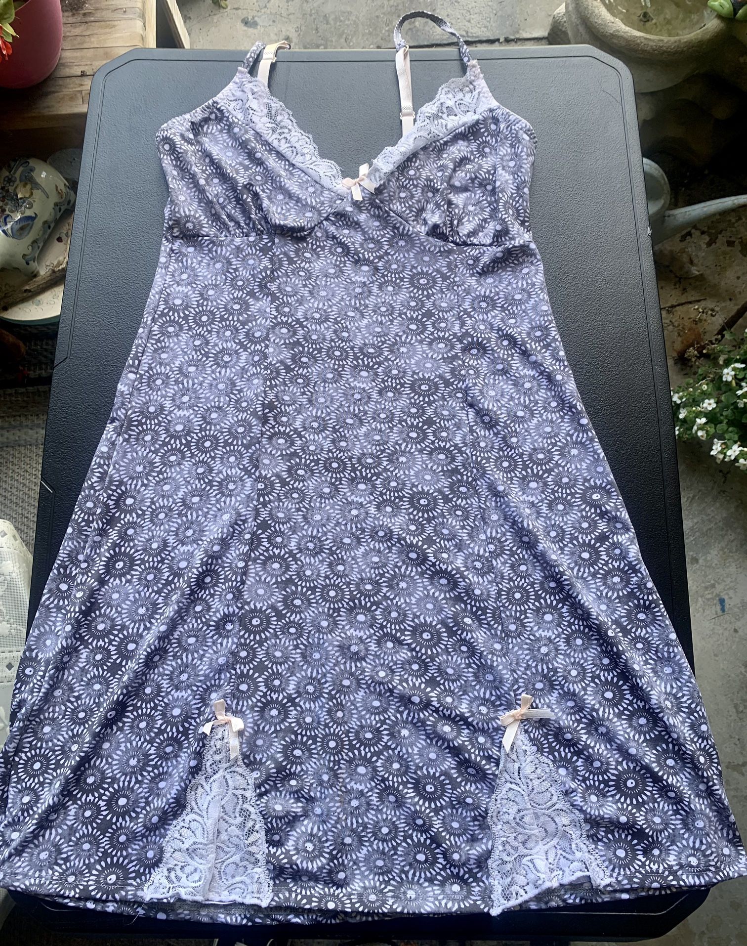 This nightgown is so cute with lace and bow accents. It very soft and looks so comfortable! Lace at bottom on left and right side looks very sexy. I’m including a FREE robe. When I found the robe I thought it matched the chemise. It’s also very soft. Note: the robe is used but in good condition. Please see pictures as they are part of the description. Thanks for looking!