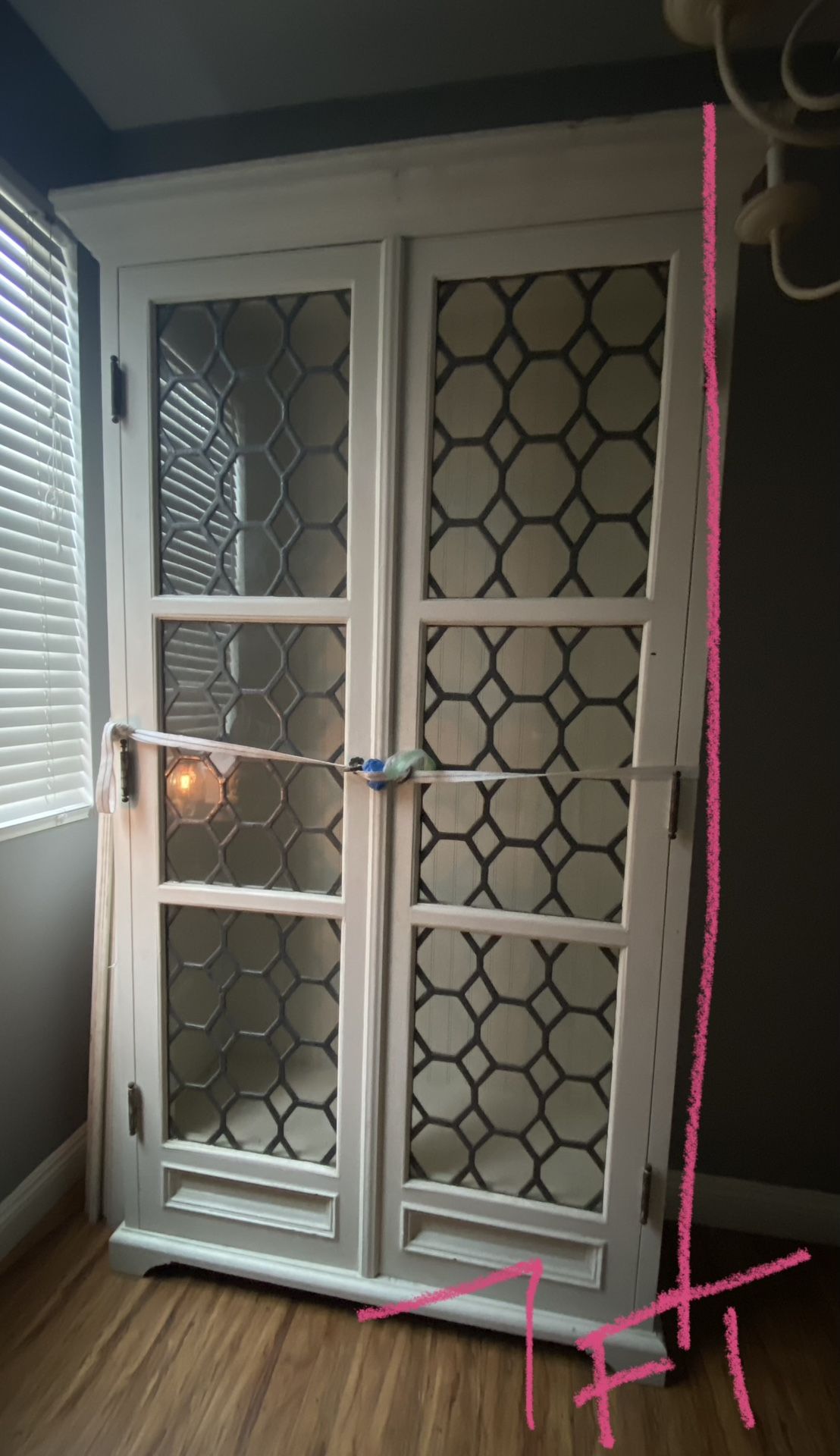 Unique wood glass door hutch. Comes with 5 shelves. Display for bar liquor storage, dinnerware. FIRM ON PRICE Measurements on pictures