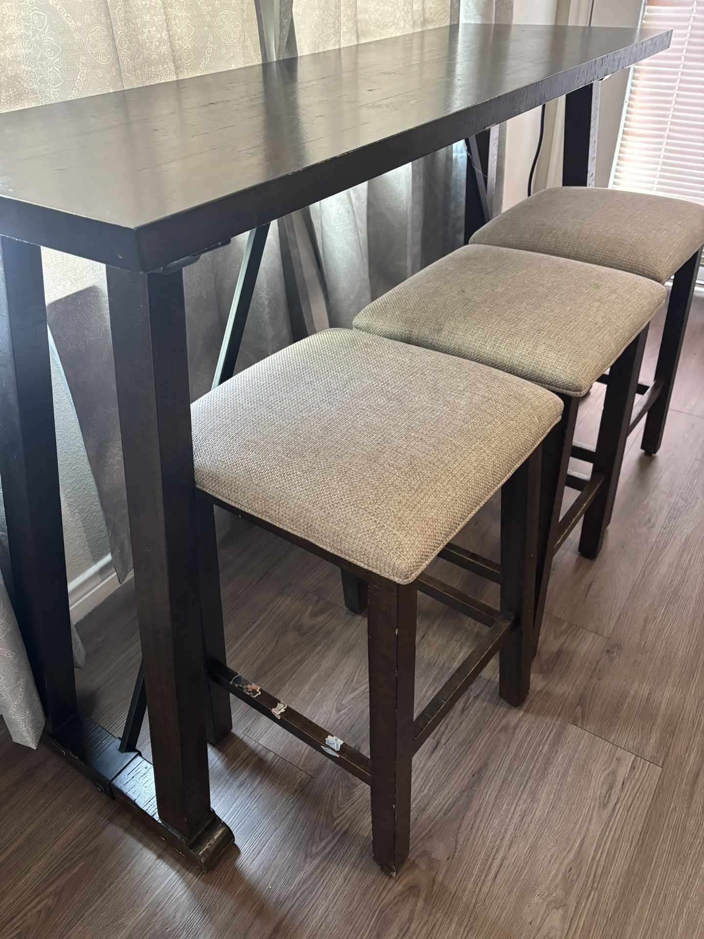 Brown sofa console table 3 stools Is electric- 2 outlets and 2 USB ports In good shape