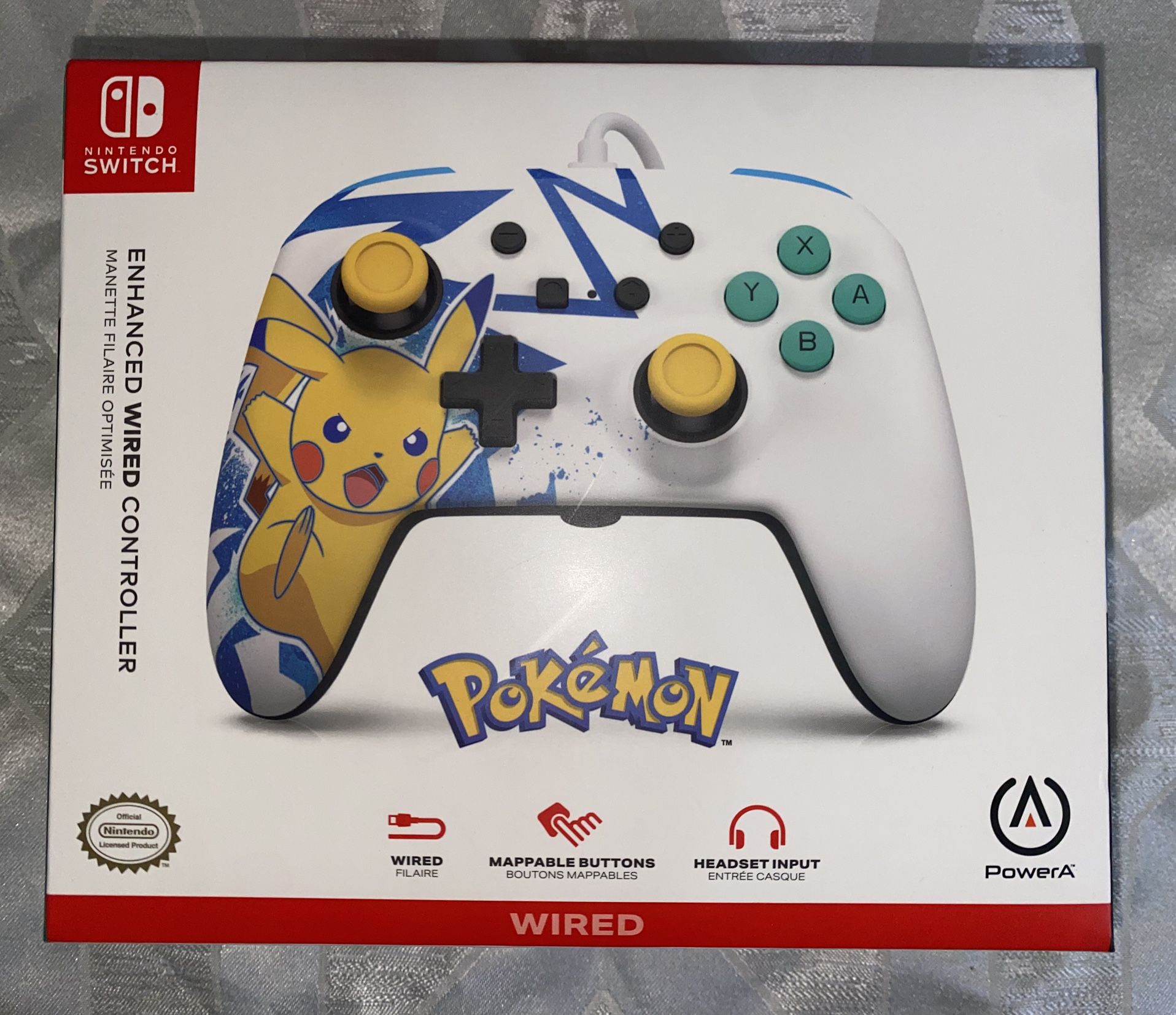 PowerA Enhanced Nintendo Switch and Switch 2 Wired Controller - Pikachu High Voltage, Officially licensed Features & details Works with Nintendo Switch 2. C button not available. Get a high voltage shock to your system every time you pick up this Pikachu-inspired controller 3.5mm audio jack Mappable Advanced Gaming Buttons Detachable 10ft (3m) USB Cable No batteries required Product Details Language: English Product Dimensions: 5.91 x 4.17 x 2.4 inches; 4.62 ounces Item model number: Pikachu High Voltage Date First Available: June 23, 2022 Manufacturer: PowerA ASIN: B0B4Z7PPZR