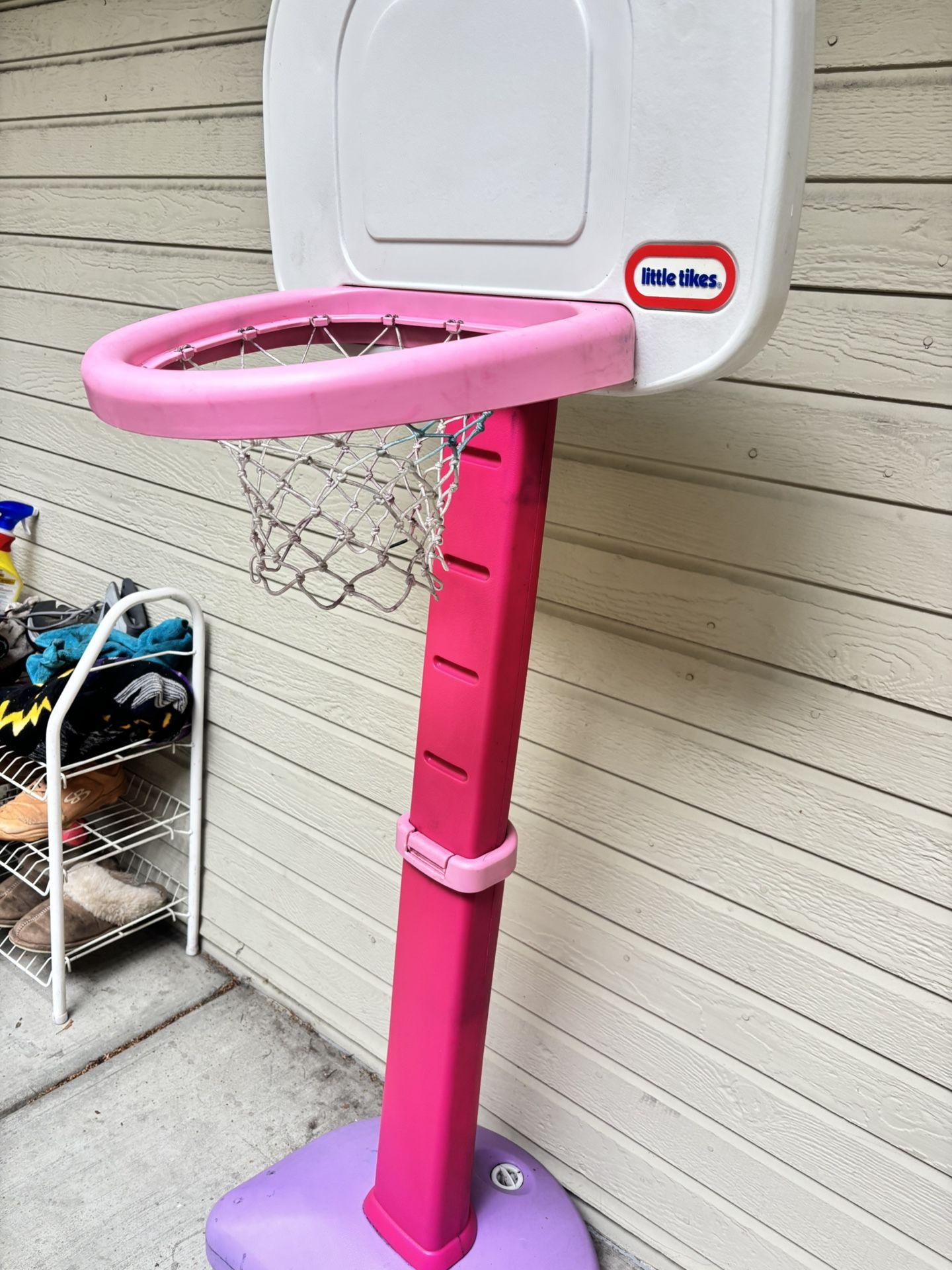 Basketball hoop. Used more than once. Can go up to 5”3-5”5.