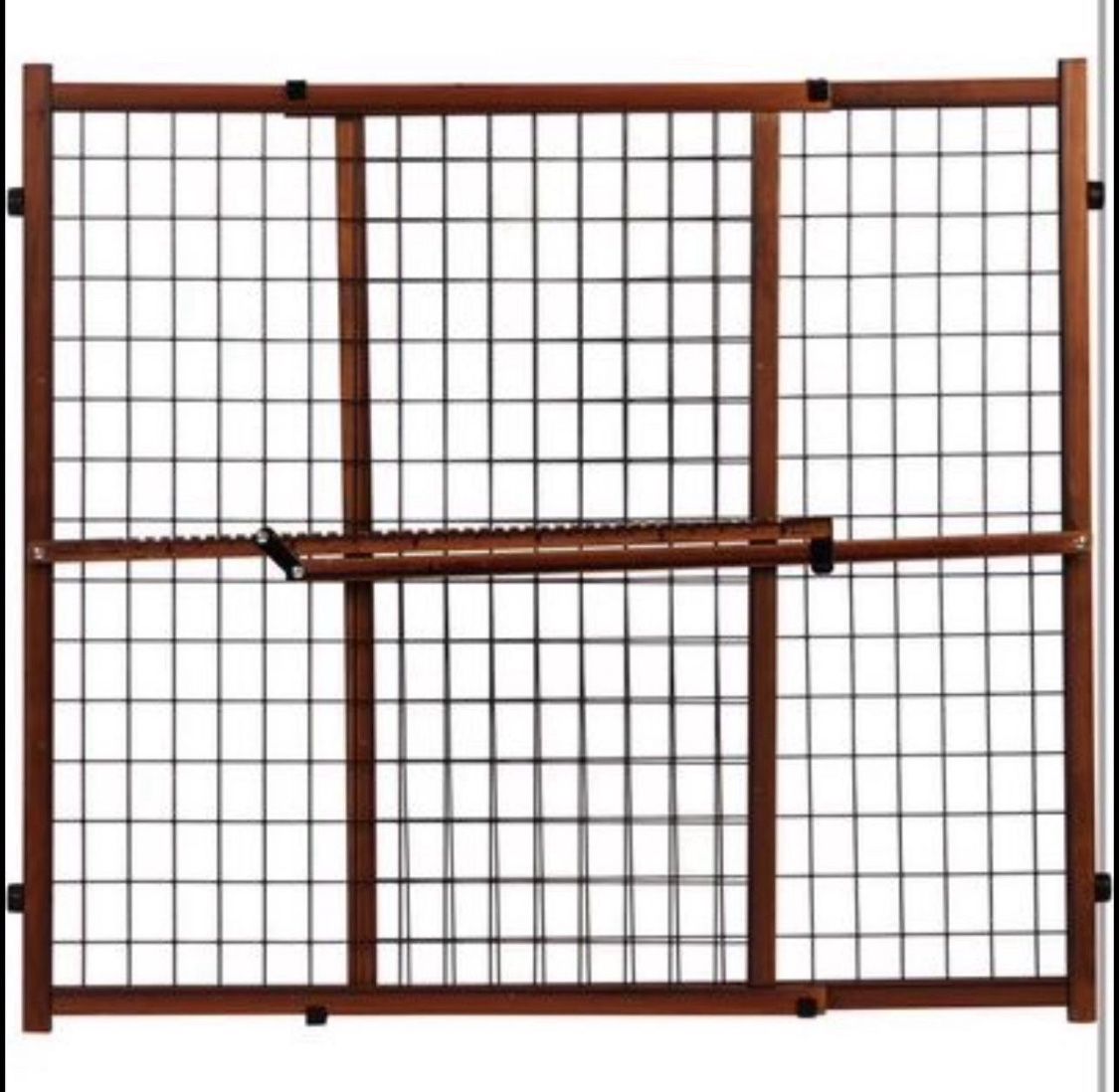 Material Wood Color Farmhouse Collection Brand Evenflo Product Dimensions 26"W x 23"H Item Weight 3 Pounds Mounting Type Pressure mount Simple to Install: The Pressure Mount Gate Allows Quick and Easy Installation and Re-Installation Neutral Styling: The warm wood and black mesh accents fit seemlessly into the farmhouse look, making this gate part of your home décor Versatile: With an Extension From 26-42 Inches and is 23 inches tall. This Gate Will Fit in Most Doorways Quickly and Easily Making Safety Easy: The Locking Bar is Marked and Notched for Easy Installation While the Sturdy Wood Frame and Plastic Mesh are Durable and Secure Child - Age: 6-24 months
