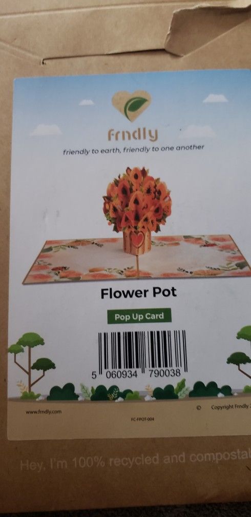 Frndly by Paper Love Pop Up Valentines Day Card, Flower Pot, Handmade 3D Popup Cards, 100% Recycled and Eco-Friendly, 8" x 6" Cover - with Removable N