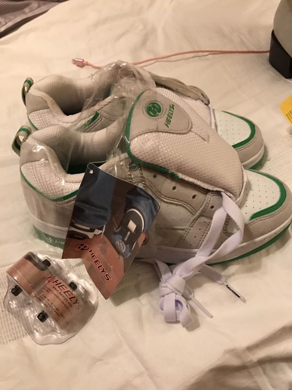 This are a brand new never used Heelys Vapor shoes with a stylish skate shoe look and shock absorbing heel feature. Includes Heelys wheels and instructions