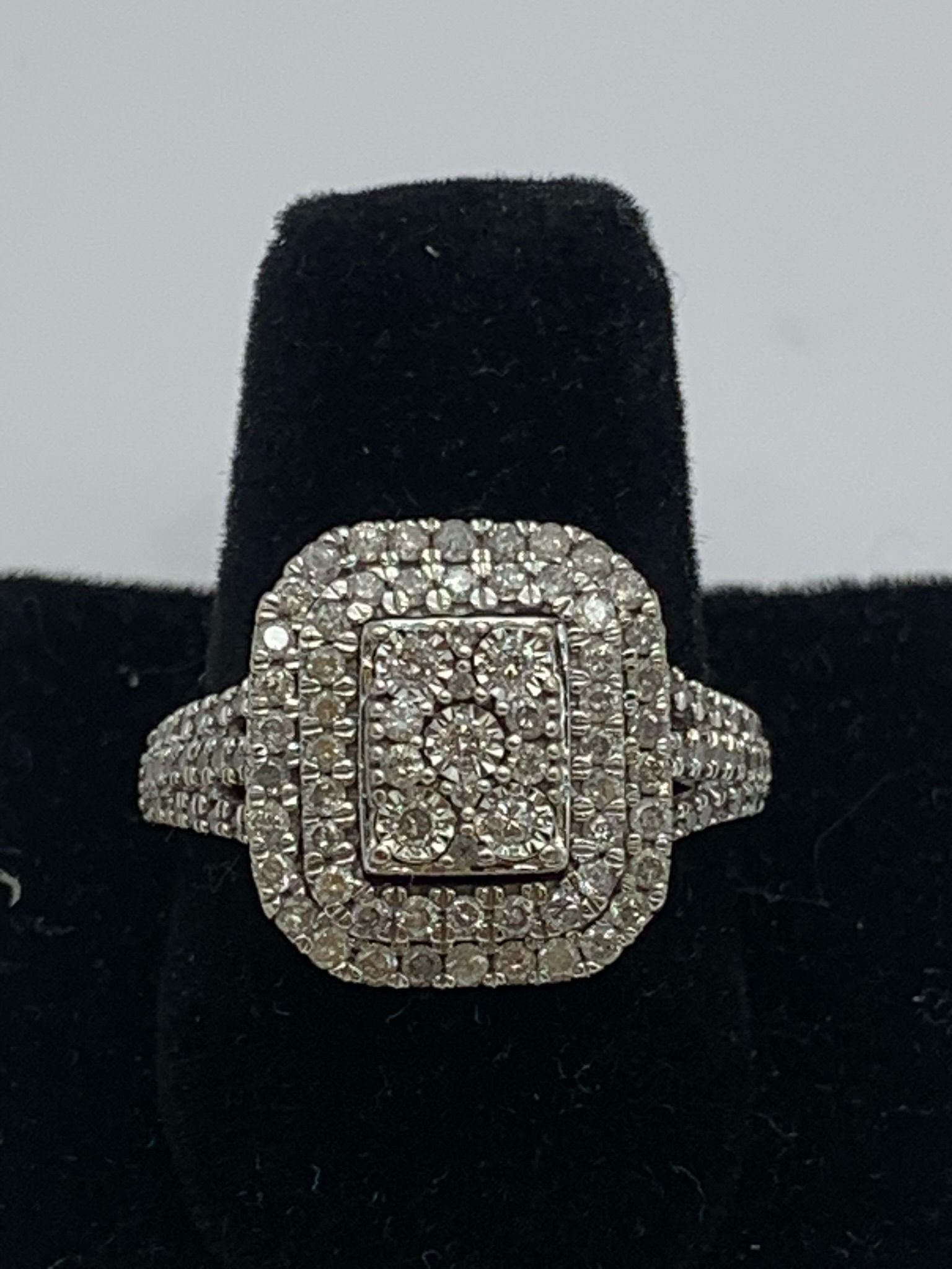 10k 5g size 7 ladies white gold diamond cluster ring. **LAYAWAY & FINANCING OPTIONS AVAILABLE**