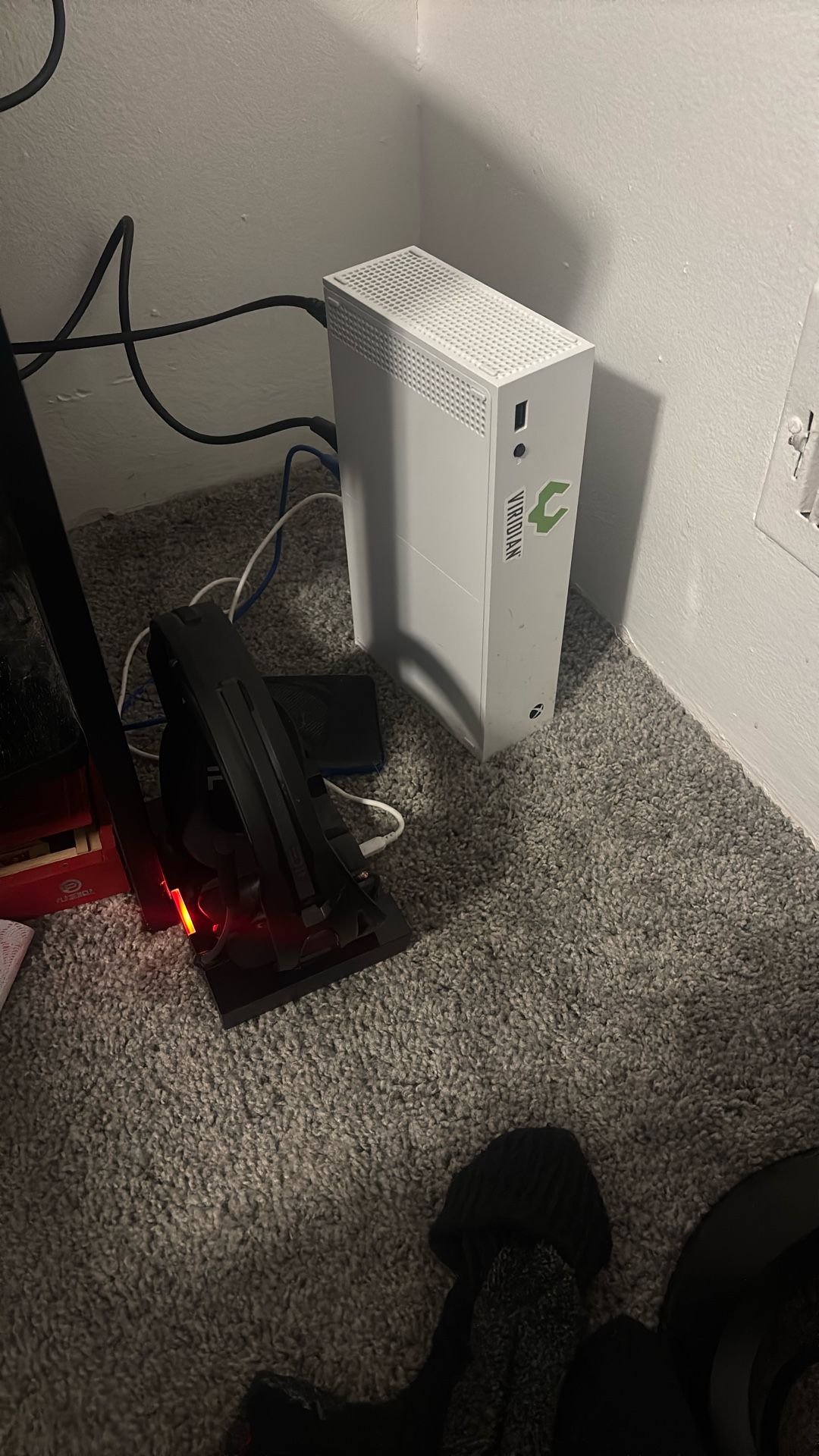 Xbox series S, I have 2 controllers, a wireless headset, and a monitor. the monitor has a desk mount and the legs to attach.