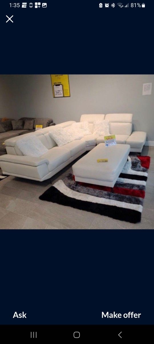 Rio White Leather Sectional Sofa W/Ottoman---$899---Limited Inventory!!!---$1 Down Financing Available