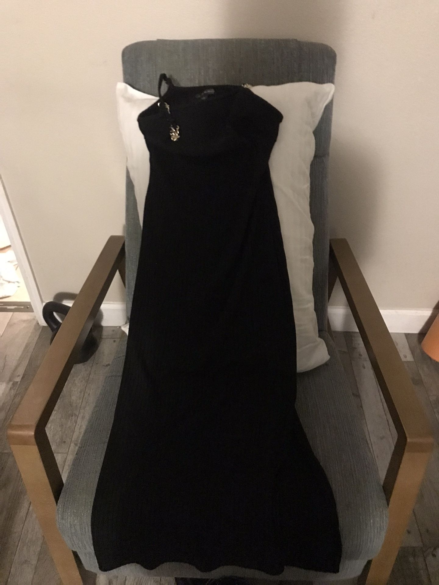 Casual Long Black Dress W/ Chain Straps And A Small Slit Up Front