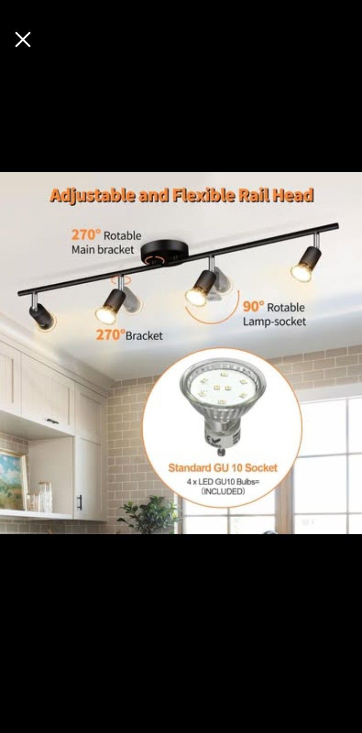 new LED 4 Light Track Lighting Kit, Silver This set is SILVER metal, not black. Brand new, never been used. Modern Stylish Design, size: (L)31.1in * (H)6.05in. 4 of 3W GU10 LED bulbs Included. You can adjust the lights and arms to different angles and adjust the light beam to exactly where you want to light up by rotating it 270 degrees horizontally and 90 degrees vertically. either ship or meet near the Premiun Outlets in Aurora, IL