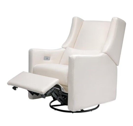 BRAND NEW Babyletto Kiwi Electric Power Glider Recliner Nursery Chair w/ USB Ports - Water & Stain Resistant Glider Rocking Chair for Nursery - GREENGUARD Gold Certified - 270° Swivel Rocker Recliner - Cream Descriptions & Features : ●Fabric ●Imported ●Power Glider Recliner Nursery Chair: Enjoy a 270° swivel, smooth gliding motion, and effortless reclining at the push of a button. Equipped with a built-in USB charging port. ●Soothe Your Baby with Every Gentle Glide: The Babyletto Kiwi Glider Recliner Chair features a lumbar pillow for maximum support and comfort. It is perfect for long hours of relaxation or soothing babies to sleep, making it an ideal choice for parents seeking functionality and luxury. ●GREENGUARD Gold & CertiPUR-US Certified: This electric glider rocking chair has undergone rigorous testing for over 10,000 chemical emissions and features CertiPUR-US certified foam, ensuring a safer, healthier nursery environment for your baby's well-being. ●Water Repellent & Stain Resistant Eco-Performance Fabric: Made from over 50 recycled plastic bottles, the durable, water-repellent, and stain-resistant fabric of this nursery glider ensures long-lasting performance while contributing to a greener planet with REPREVEⓇ recycled polyester yarn. ●Stylish & Versatile Swivel Rocker Recliner Chairs: This modern glider rocking chair for nursery and living room is designed to blend seamlessly into both spaces. Upholstered in performance cream eco-weave fabric, it provides a timeless look that complements any home décor style. Specifications : Brand : babyletto Color : Performance Cream Eco-weave Material : Polyester Frame Material Type : Wood Product Dimensions : 36"D x 29"W x 41"H Back Style : reclining Style Name : Classic Product Care Instructions : Wipe Clean Additional Features : Durable, Resistant Furniture Base Movement : Swivel LIKE NEW Our Outlet Price:$300 Pick Up : Marietta Delivery Available : $40 - $60 ( very reasonable)