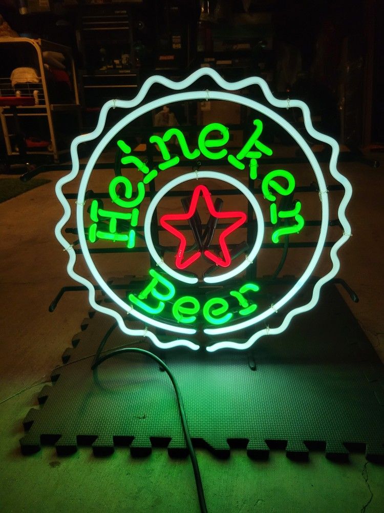 Neon Heineken Beer Bottle Top Sign Used condition. Works good, just a little dusty from storage. Local pickup in Whittier.