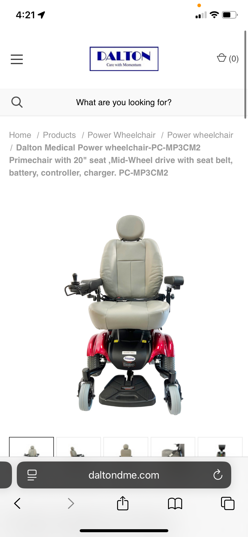 Dalton Medical Power wheelchair-PC-MP3CM2 Primechair with 20" seat ,Mid-Wheel drive with seat belt, battery, controller, charger. PC-MP3CM2