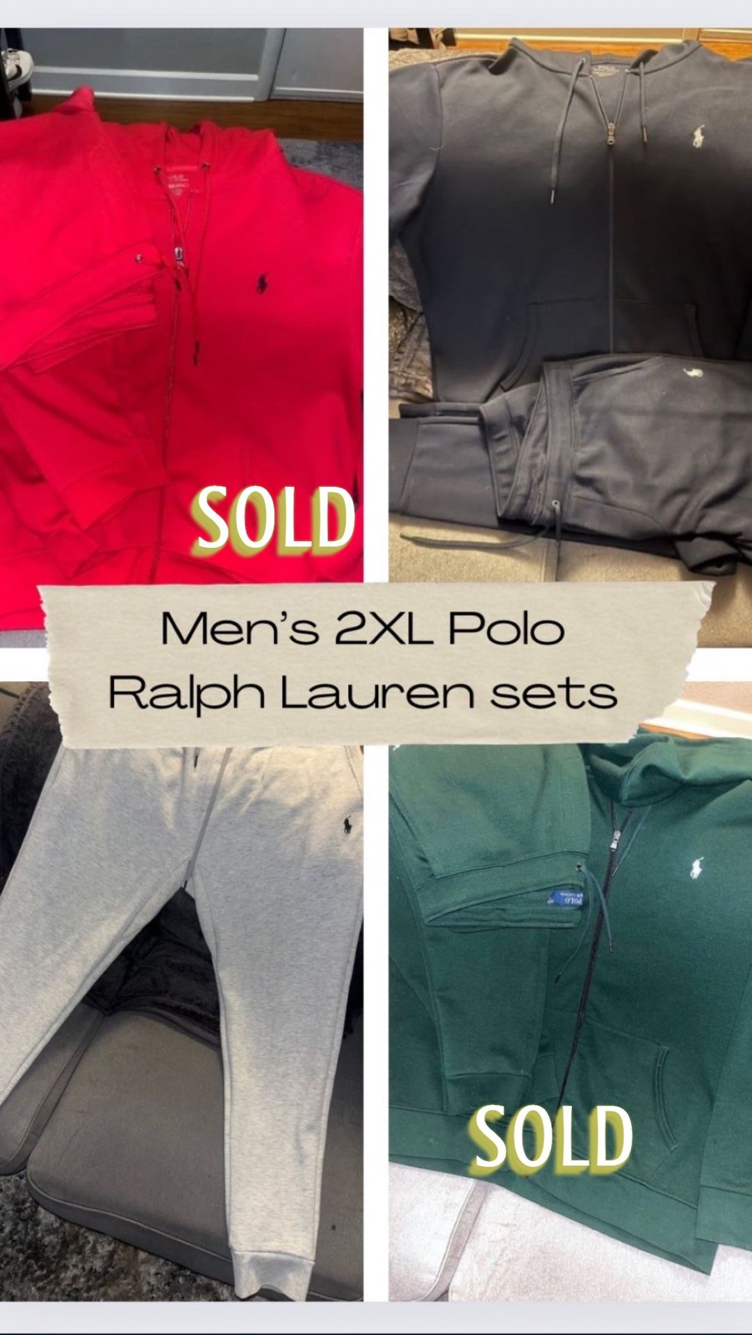1 Men’s XL Polo, Ralph Lauren Jogger Set Left & Gray pants!