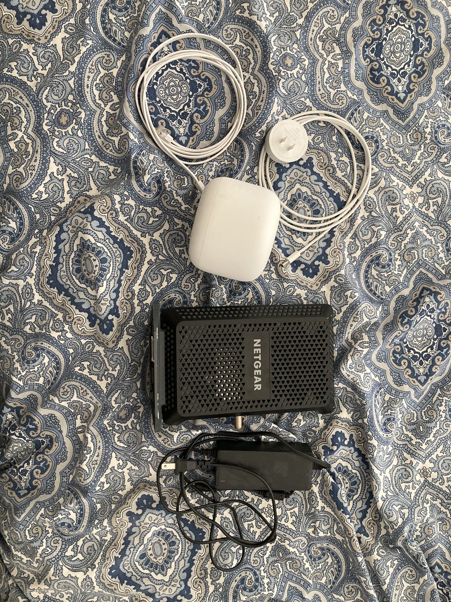 Google Nest Router, gives great WiFi range. Netgear Modem CM1000v2. We’ve had both of these for a few years, but haven’t been using them since we moved to Gilbert about a year ago after we switched to Cox Internet