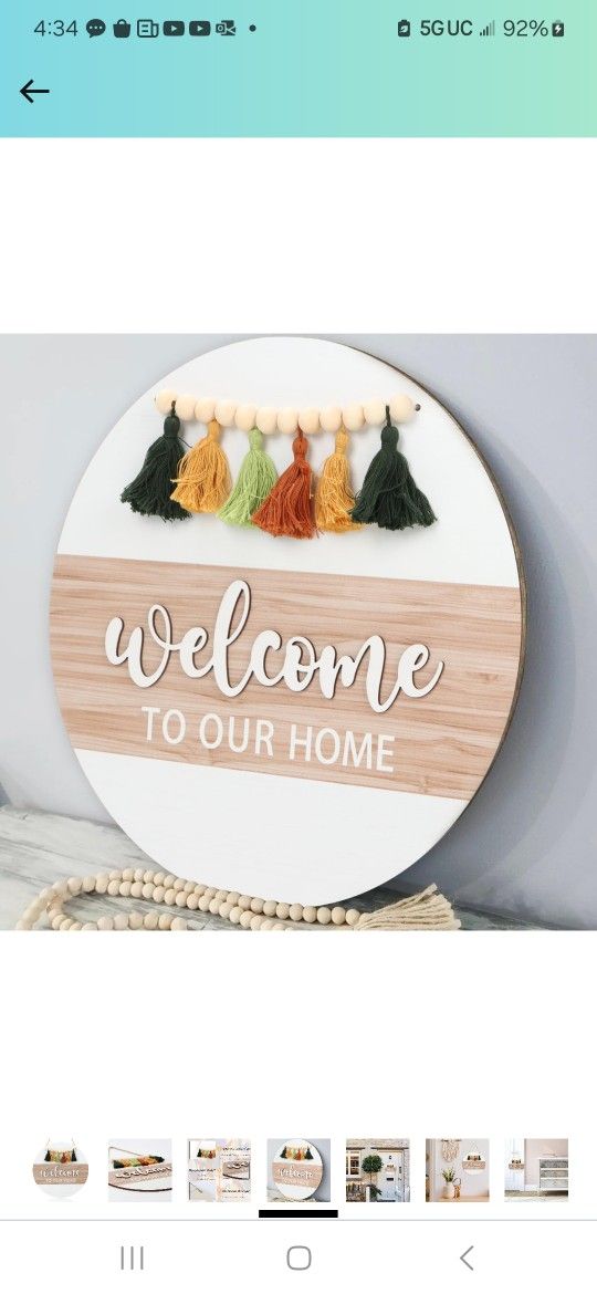 3D Welcome to Our Home Front Door Wood Sign, Boho Farmhouse Wall Porch Hanging with White Bead Tassels, Bohemian Welcome To Our Home Sign Plaque for E