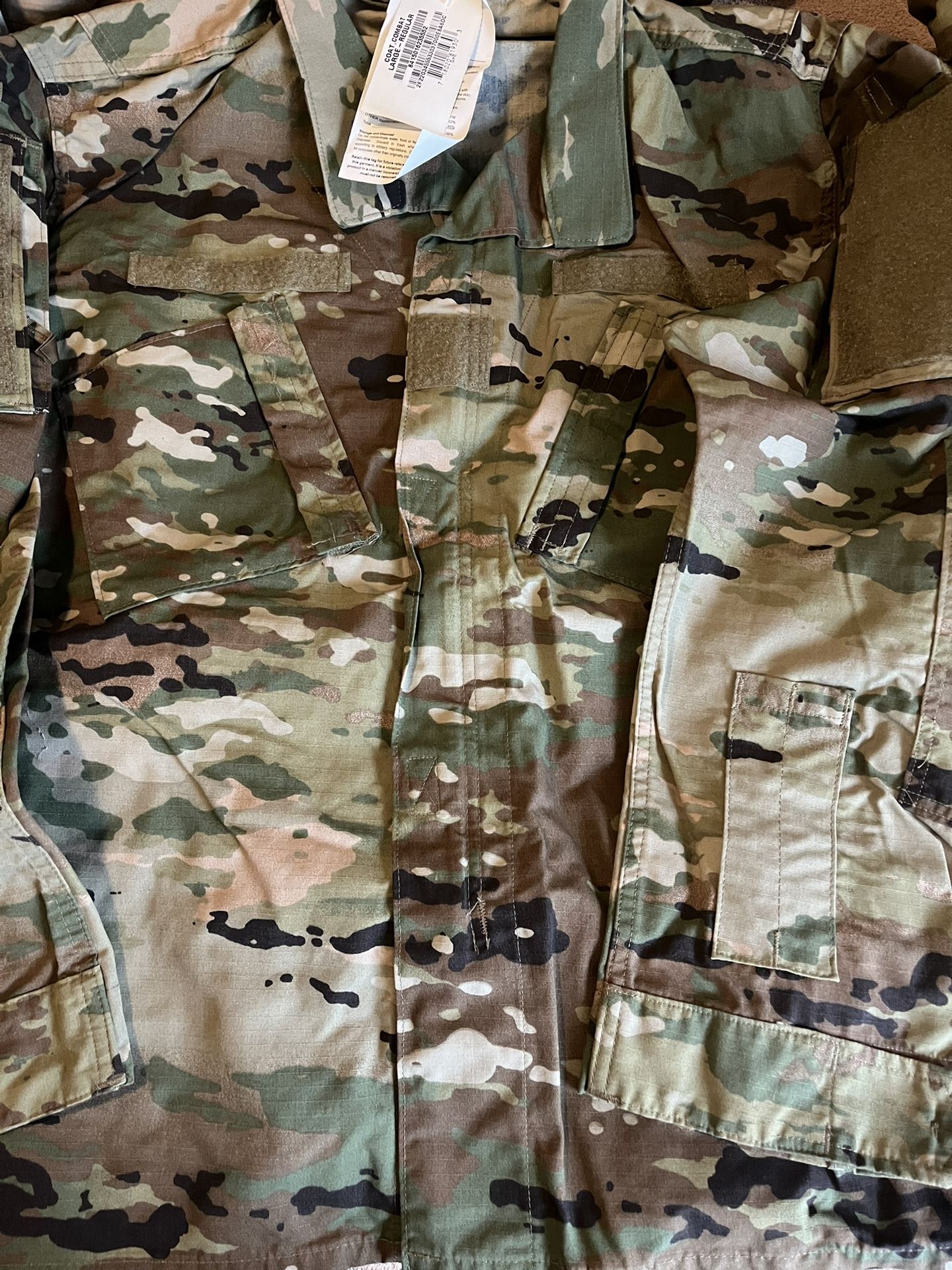 Brand new OCP Large Regular Tops- 4 $30 each Brand new OCP Larger Regular Pants- 2 $30 each Everything still has tags, garage cleaning.