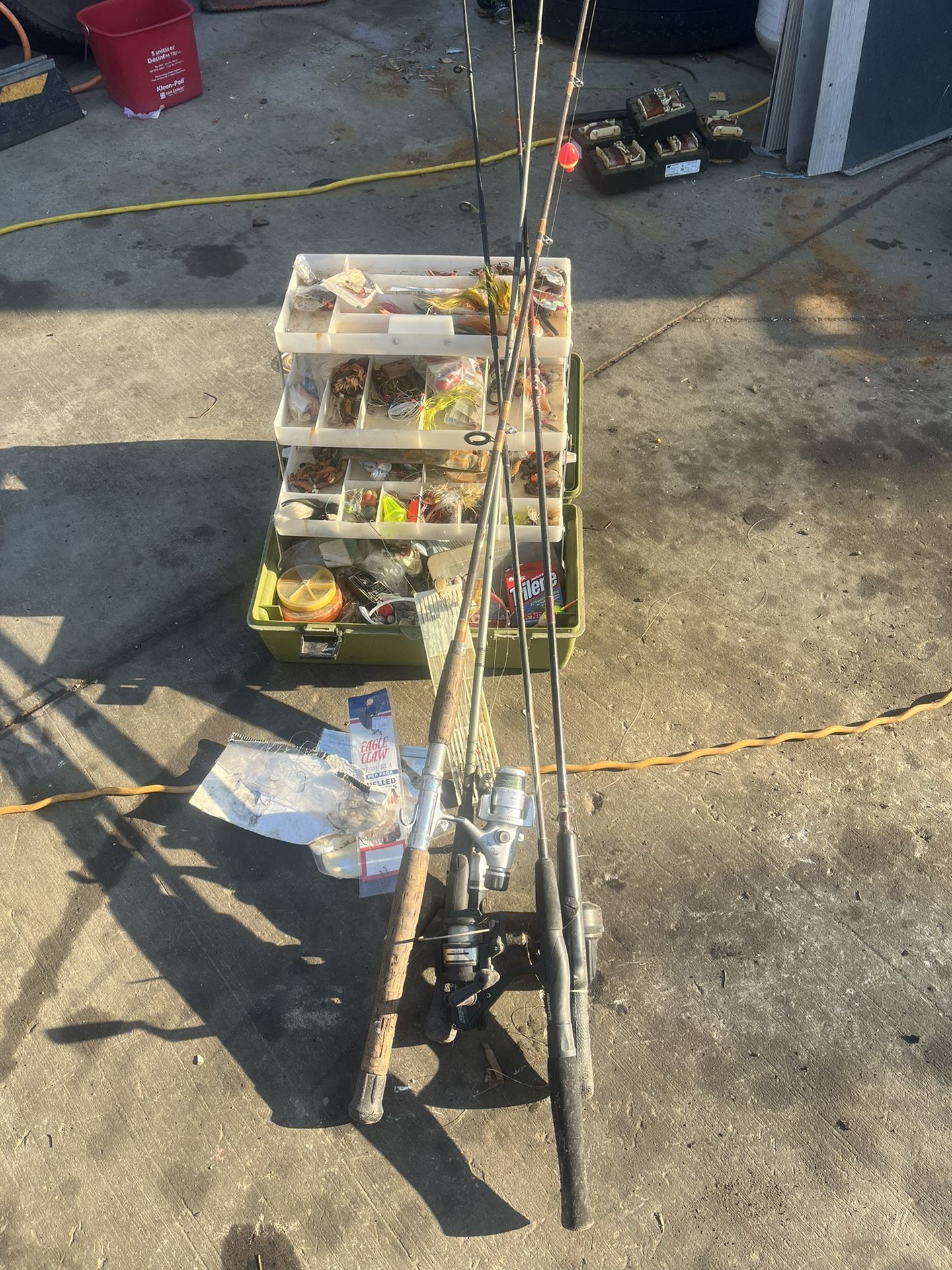 This has a variety of different items for fishing With the fishing poles included Also the carrier for all the stuff I no longer need That weather to fish is near , Come get these items today! They won’t last long You buy as is Pick up or drop off First come first serve I don’t have use for anymore but MAYBE YOU WILL TODAY!