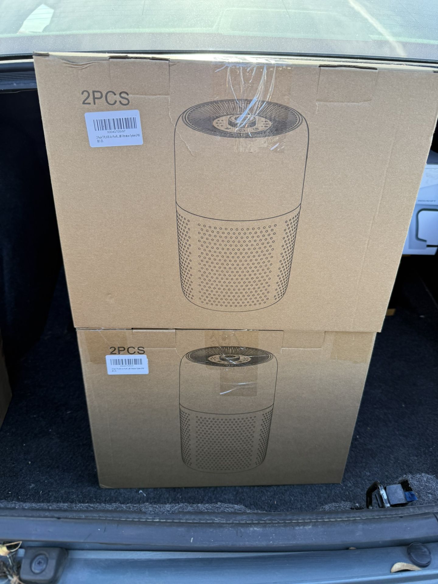 Both sets are brand new and come with two purifiers, all black. $30 for one set; $50 for both.