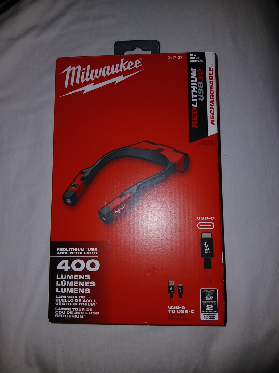 New. Never used. Milwaukee Redlithium USB3.0 Rechargeable 400L Neck Light. USB-c 400 lumens. Model 2117-21. Reasonable offers only. No trades.