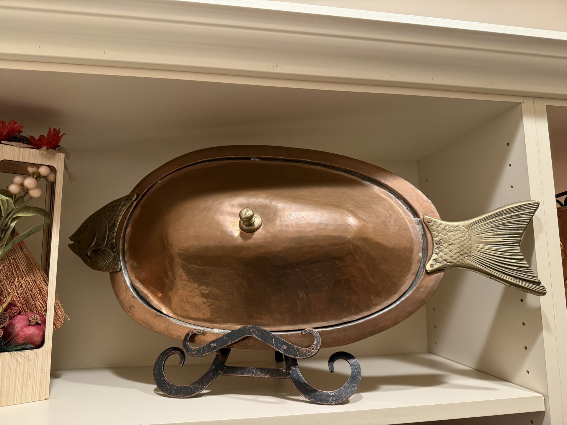 Beautiful and rare Two tone Copper and Brass serving dish for fish, great for all kinds of gatherings