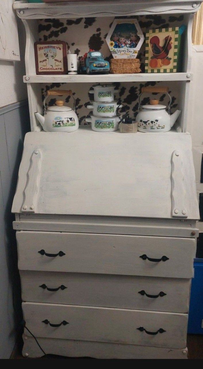 Selling this beautiful hutch or desk with bookcase. However you would like to use it! I love it but I down sized so need to get rid of a lot of beautiful furniture. Antique cute look! I'm sure it will go to a good home ❤️ it's really sturdy and real wood as well. Thank you for your time. Height 65 Leghtth 31 Width 7 and 18(lower part) Asking 190 OBO Decor not included