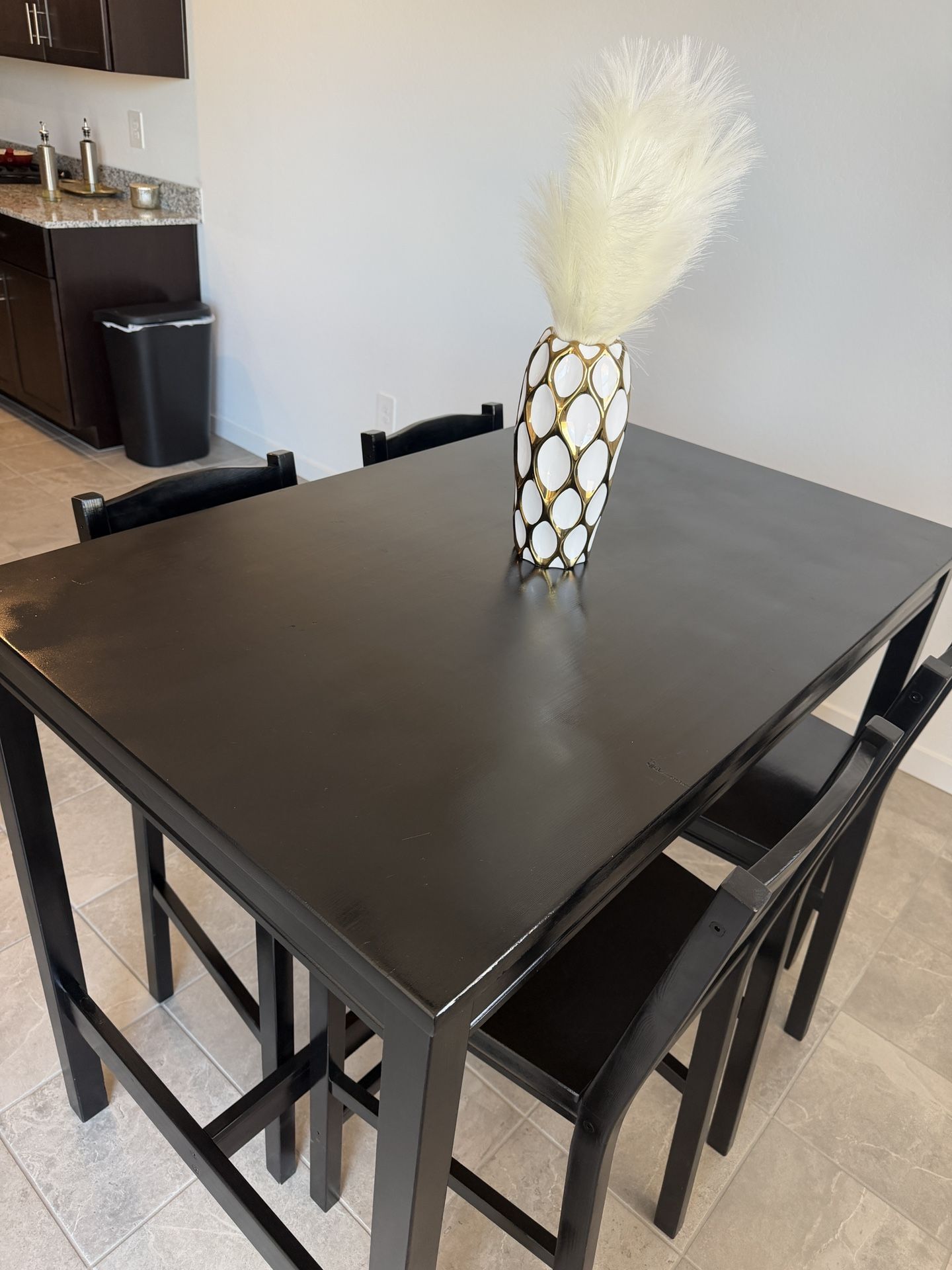 Buenas condiciones Poco uso No tiene ningún raspón ni en la mesa ni en la sillas Casi nueva