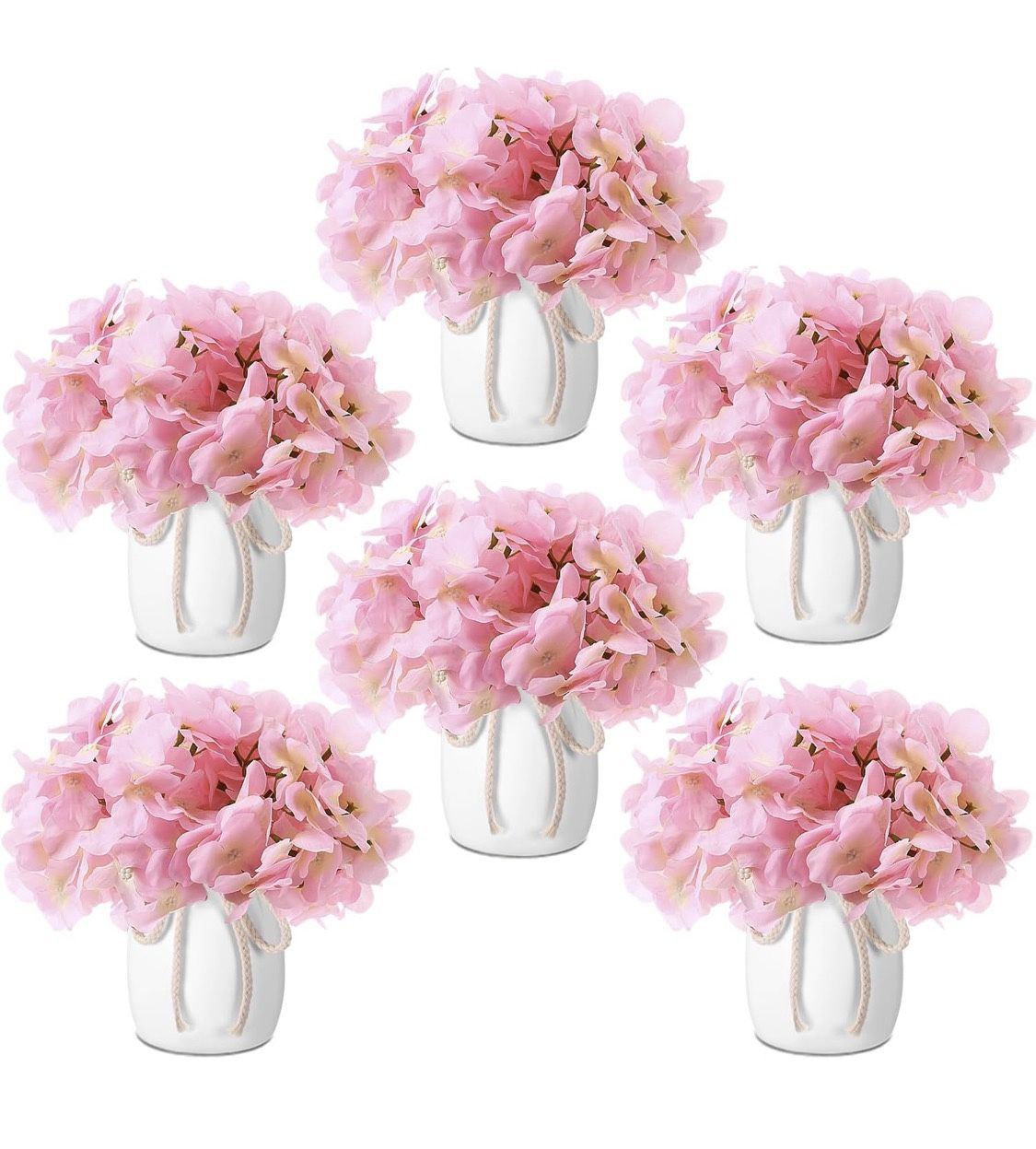 Leinuosen 6 Set Artificial Hydrangea Flowers and Plastic Vases Set Centerpieces Table Decorations Silk Fake Hydrangea Full Flowers Heads with Stems Bulk for Wedding Home Baby Shower (Pink) INV: 657721