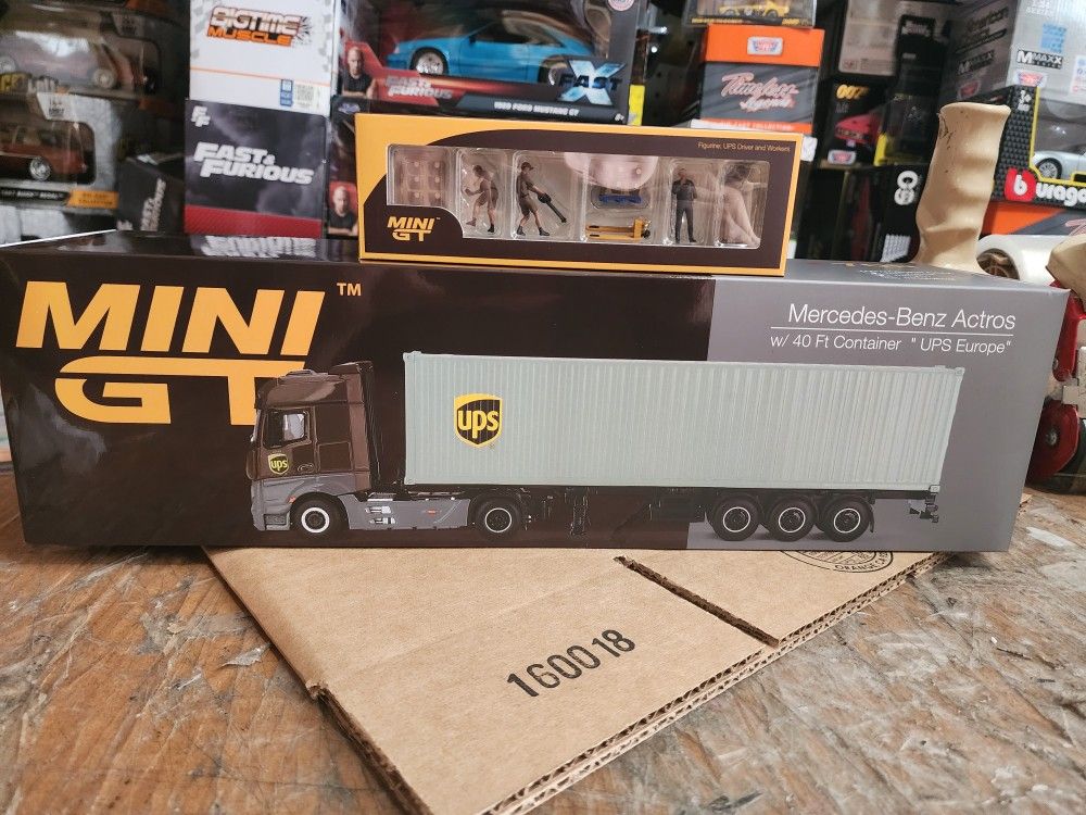 MERCEDES-BENZ ACTROS W/40' CONTAINER "UPS EUROPE" 1/64 MINI GT AND FIGURINES