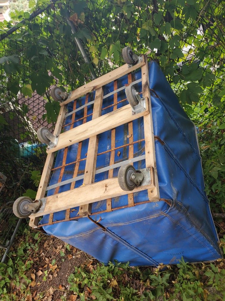In very good condition large Steele blue vinyl canvas hamper on wood platform 6 wheels, $275 new. Great for moving, rolling storage... $60 CASH Porch transaction, Mission Hill location For in-person, pick-up, porch transaction Will need truck or van to transport. Mission Hill 02120 location CASH Only / Firm $60 *** If it's posted, it's available. *** Still got it, available today and tomorrow. Mission Hill location 02120. Let me know a time for street address. Thanks. Serious inquiries only. To set-up time, message via app. only, No giving phone # or delivery, shipping or meeting-don't ask.