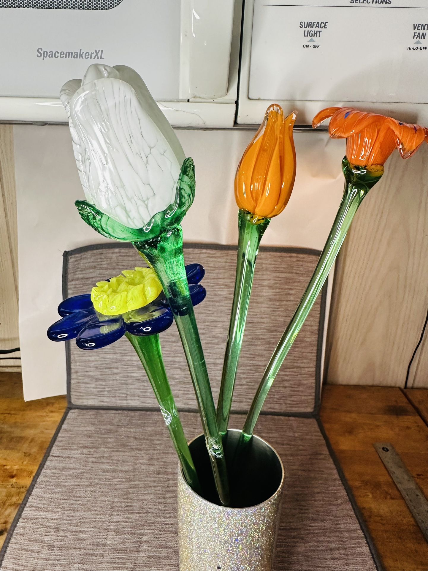 Royal Glassworks in the Czech Republic is famous for its stunning, hand-blown glass art. Their beautiful glass flowers are meticulously crafted, showcasing exceptional skill and attention to detail. Each Flower is between 15in and 20 inches they variety in size . Open to reason Offers and Pick up North Stockton or can Drop off .