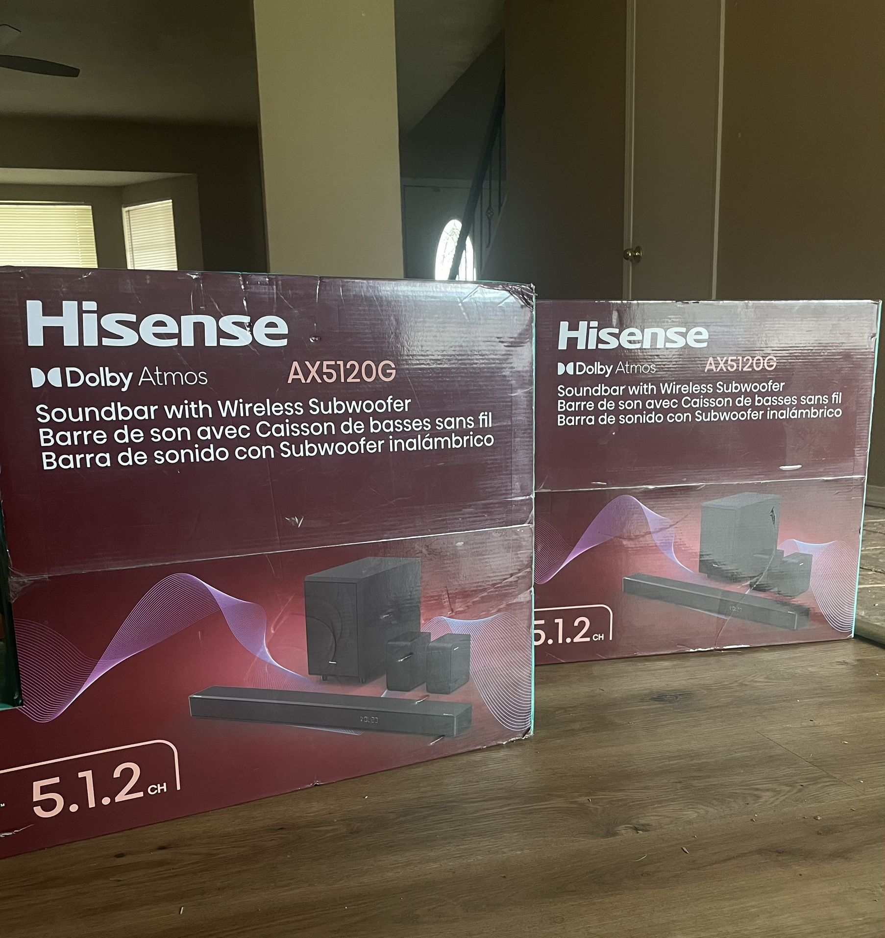 (Only have 1 set left) Local pickup only in Shawnee Oklahoma First come first serve (no holds) brand new Hisense AX5120G 5.1.2ch Dolby Atmos soundbar** + wireless subwoofer This whole set is brand new it’s only opened to be tested and to publish a video on my Facebook Marketplace listing I have for this item. I would add the video on here but don’t see an option to add it unfortunately. ✔ **420W Power** – Theater-like bass & crisp dialogue ✔ **Dolby Atmos + DTS Virtual:X** – 3D surround sound ✔ **Bluetooth & HDMI ARC** – Works with any TV ✔ **Original cables included** – Plug & play! - cash/cashapp only– Serious buyers please