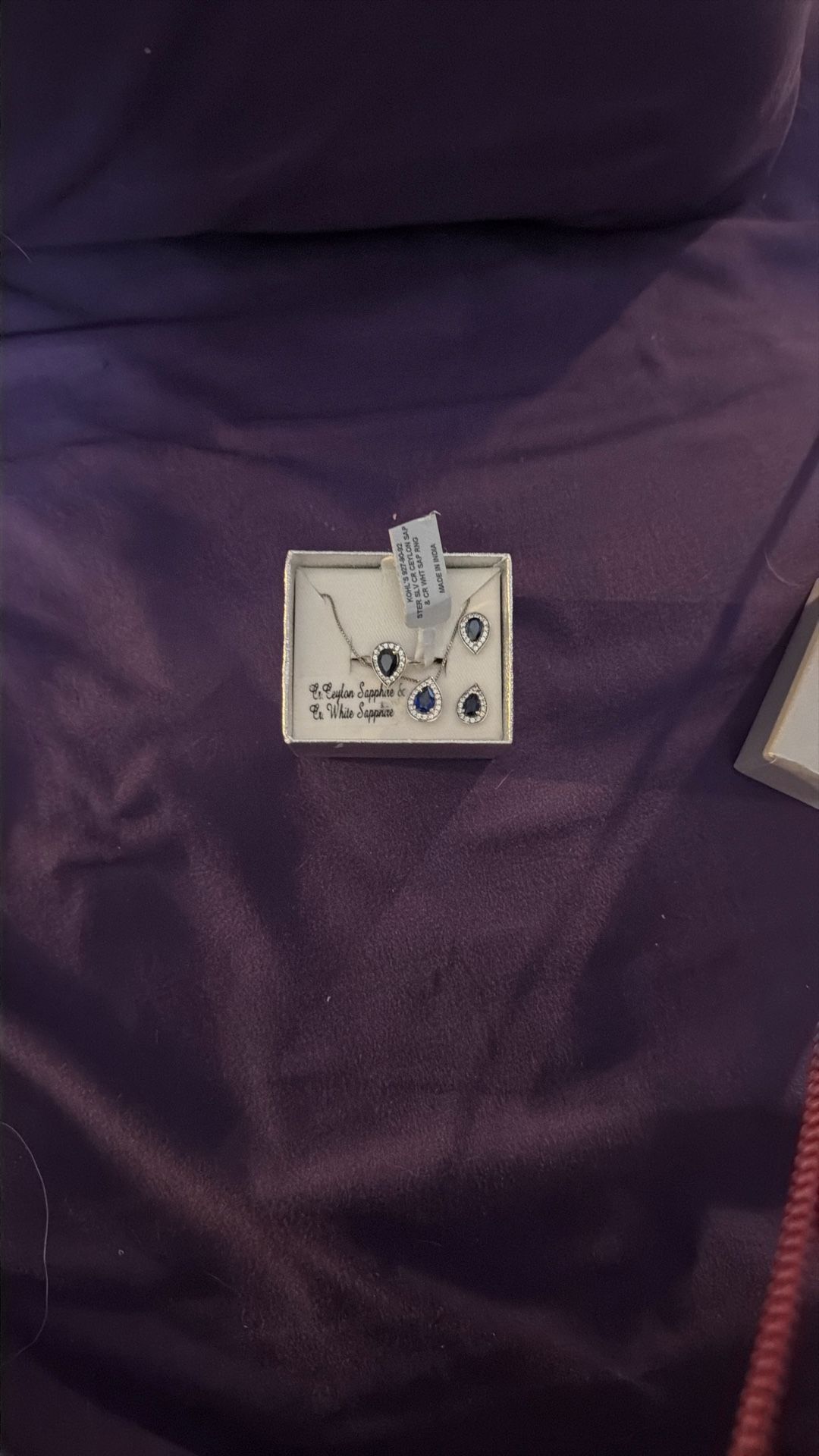 Lab created Ceylon and white sapphire necklace, earrings and size 7 ring….. valued over $500 dollars if purchased from a store…new never worn
