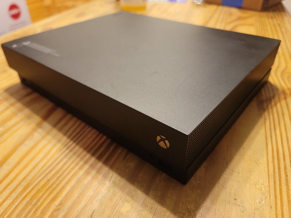 Xbox One X is in great condition. No cracks or bruises! Works amazing and has no issues. It will come with the power cord, xbox One x console, 1 xbox one controller, and 1 High Speed HDMI cable. Connects to network nicely (pics shows test via hardwire network connection) harddrive transfers and downloads perfectly. See pics for all the info! Experience immersive true 4K gaming. Games play better on Xbox One X. The 8-core Custom AMD CPU is clocked at 2.3GHz to bring enhanced AI, real-world detail, and smoother interactions to your gaming. Excellent GDDR5 graphic memory adds speed and power to game performance to enable bigger worlds, further horizons, and quicker load times. Brand Microsoft With Motion Control Yes Blu-ray Compatible Yes 4K Capable Yes Wireless Connectivity Bluetooth, Wi-Fi Supported Network Xbox Network Storage Capacity 1 TB Height 2.36″ tall Width 11.81″ wide Depth 9.44″ deep Release Date November 201 https://offerup.co/faYXKzQFnY?$deeplink_path=/redirect/
