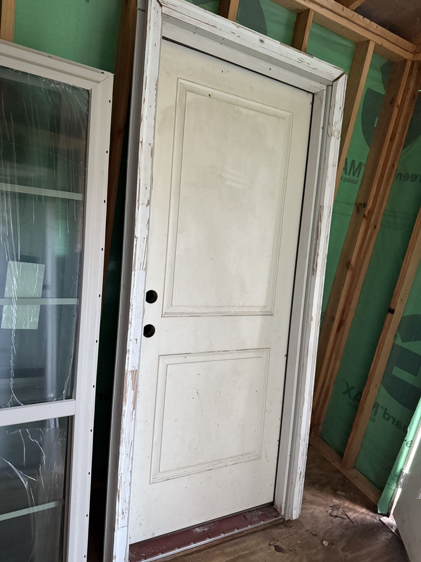 New exterior door the frame is scratched but it has never been installed. La puerta es nueva nunca se a instalado pero está raspado el frame
