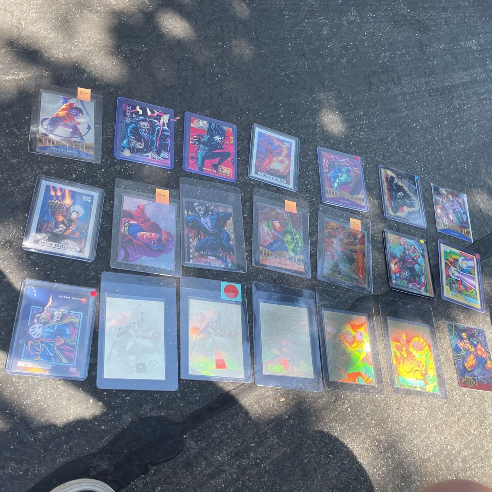 Various marvel cards Collectible X-men cards holofoil prism refractor Vintage Wolverine gambit morbius nightcrawler Various prices
