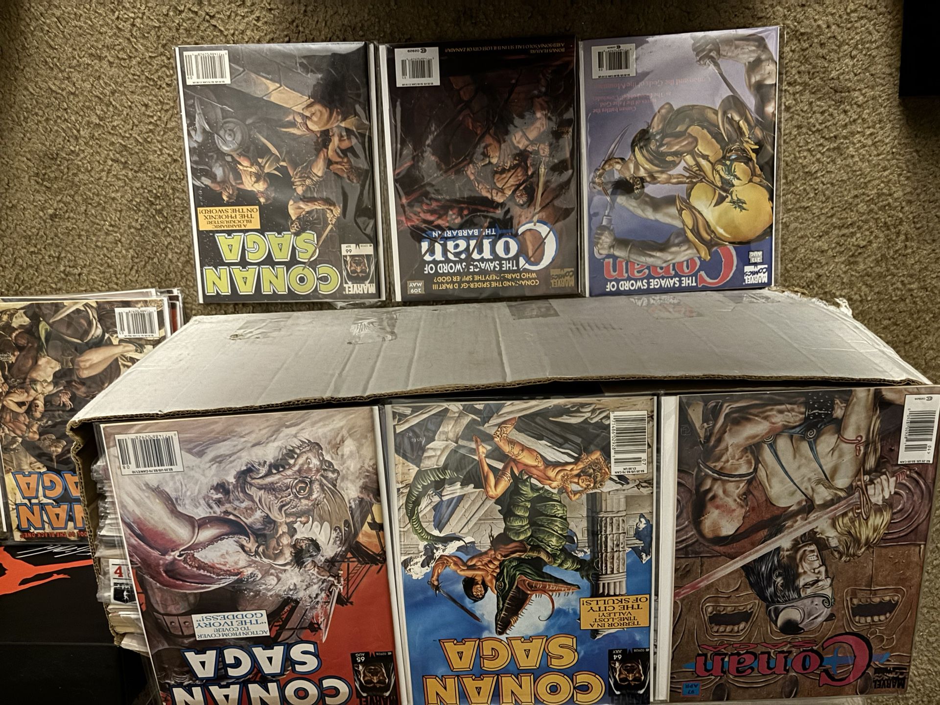 10x14 Conan Saga Comic Sale Organized in Order All are bagged boarded Comic books ranging from two dollars to 50 Looking for a real Conan, the barbarian collector There are also 1970s and 1980s magazines for sale. 1980s to 1990s and Y2K sports cards. No Pokémon or Yu-Gi-Oh cards. Local comic book shops, please inquire and professional collectors inquire
