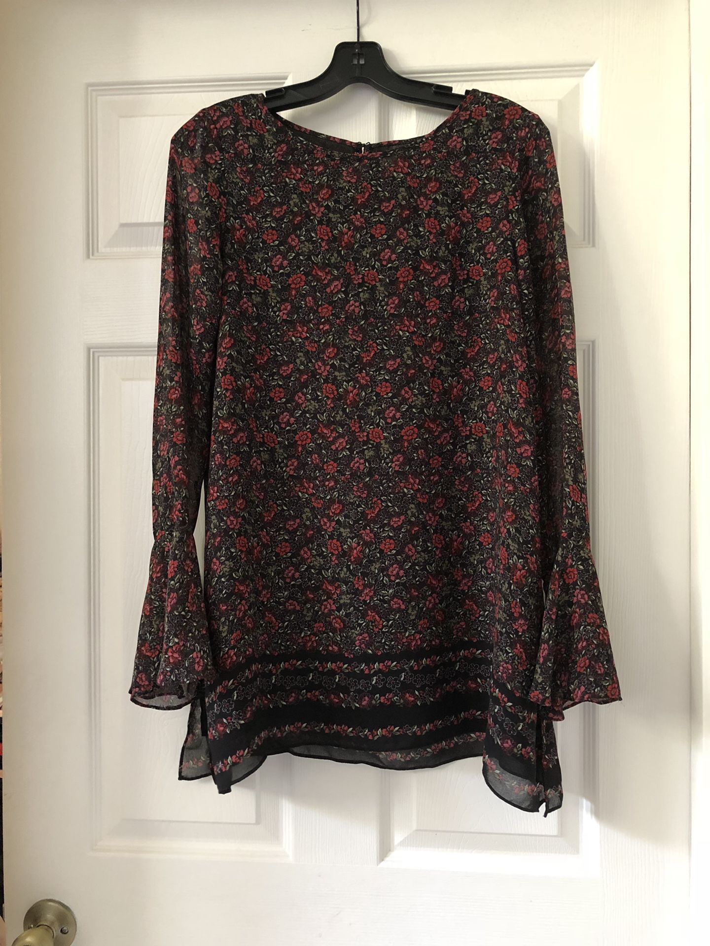 size S. Boatneck - Long flounce sleeves - Back keyhole with button closure