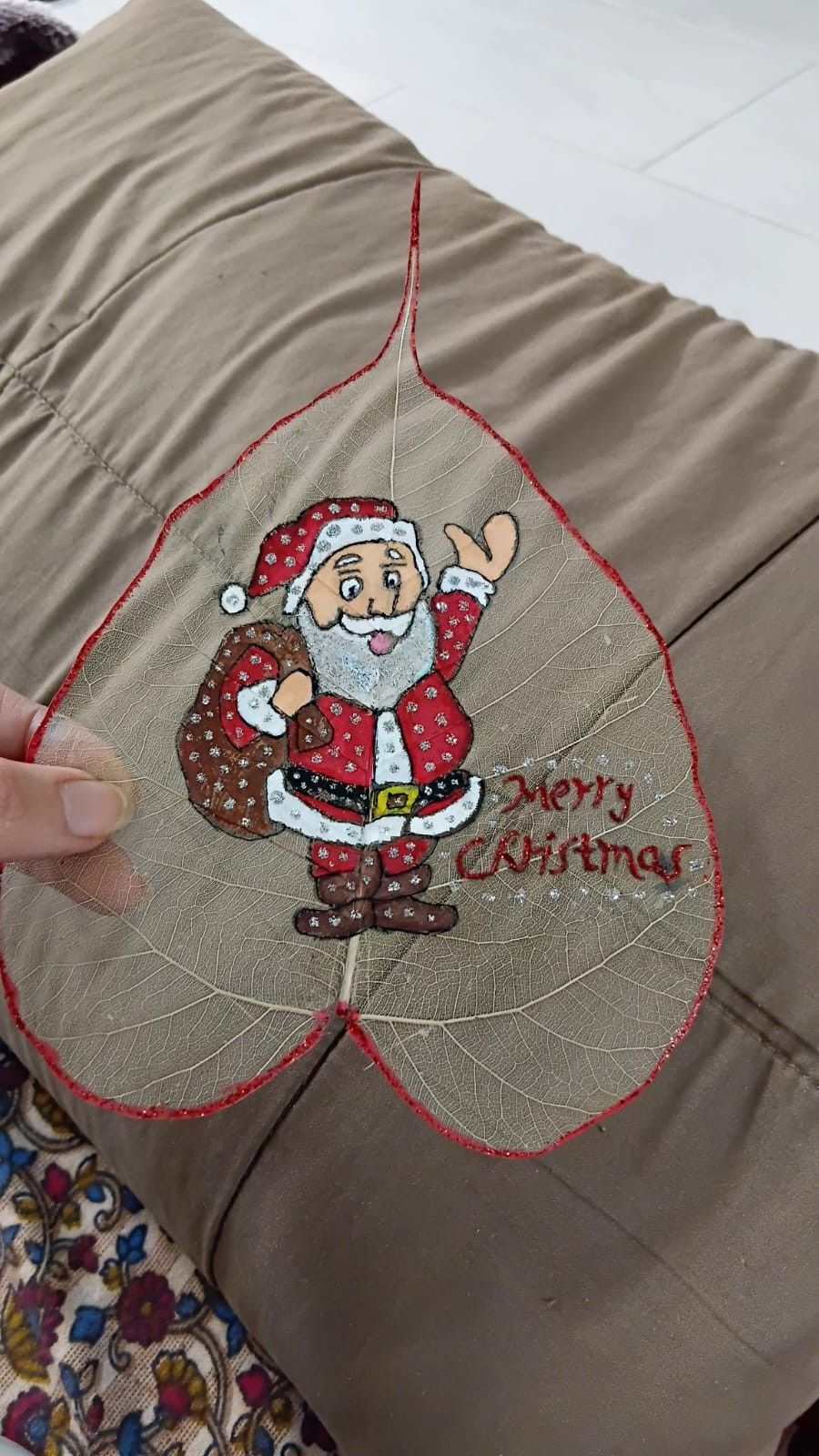 This are hand painted Christmas Designs on real natural skeleton leaves perfect for Christmas gifting, decorations, wall hanging. Each leave is carefully cleaned, painted, sealed and decorated with glitter accents.