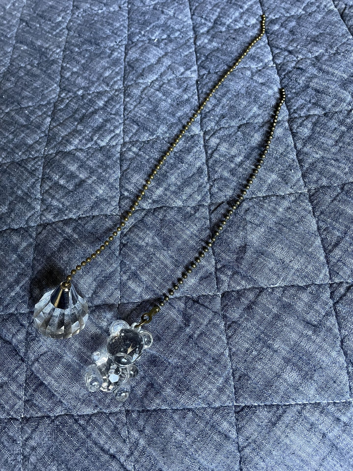 Two ceiling fan pull chains. One is a bear and one is a diamond