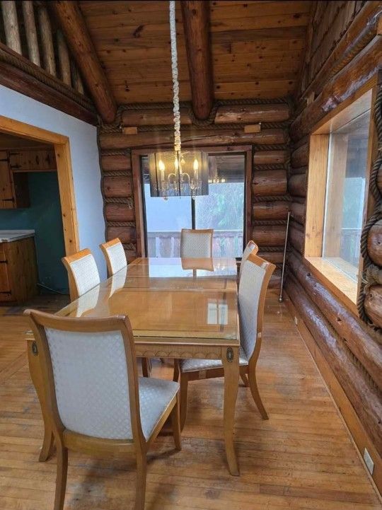 Howdy folks! We're offering a gorgeous dining table and hutch set that's in excellent, near-mint condition. There are just some very light scuffs here and there from normal use otherwise, it's in beautiful shape overall. Crafted from high-quality maple, the set features a stunning bird's eye maple design on the table top. Those distinctive, swirling bird's eye patterns give it an elegant, one of a kind look that's truly eye-catching. If you have any questions please reach out. We are looking for offers on this set.