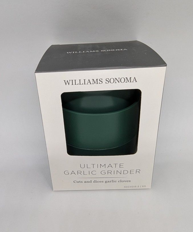 Williams Sonoma Ultimate Garlic Grinder, still in its original box! This handy gadget quickly dices garlic without the mess. It's also BPA-free and top-rack dishwasher safe for easy cleaning