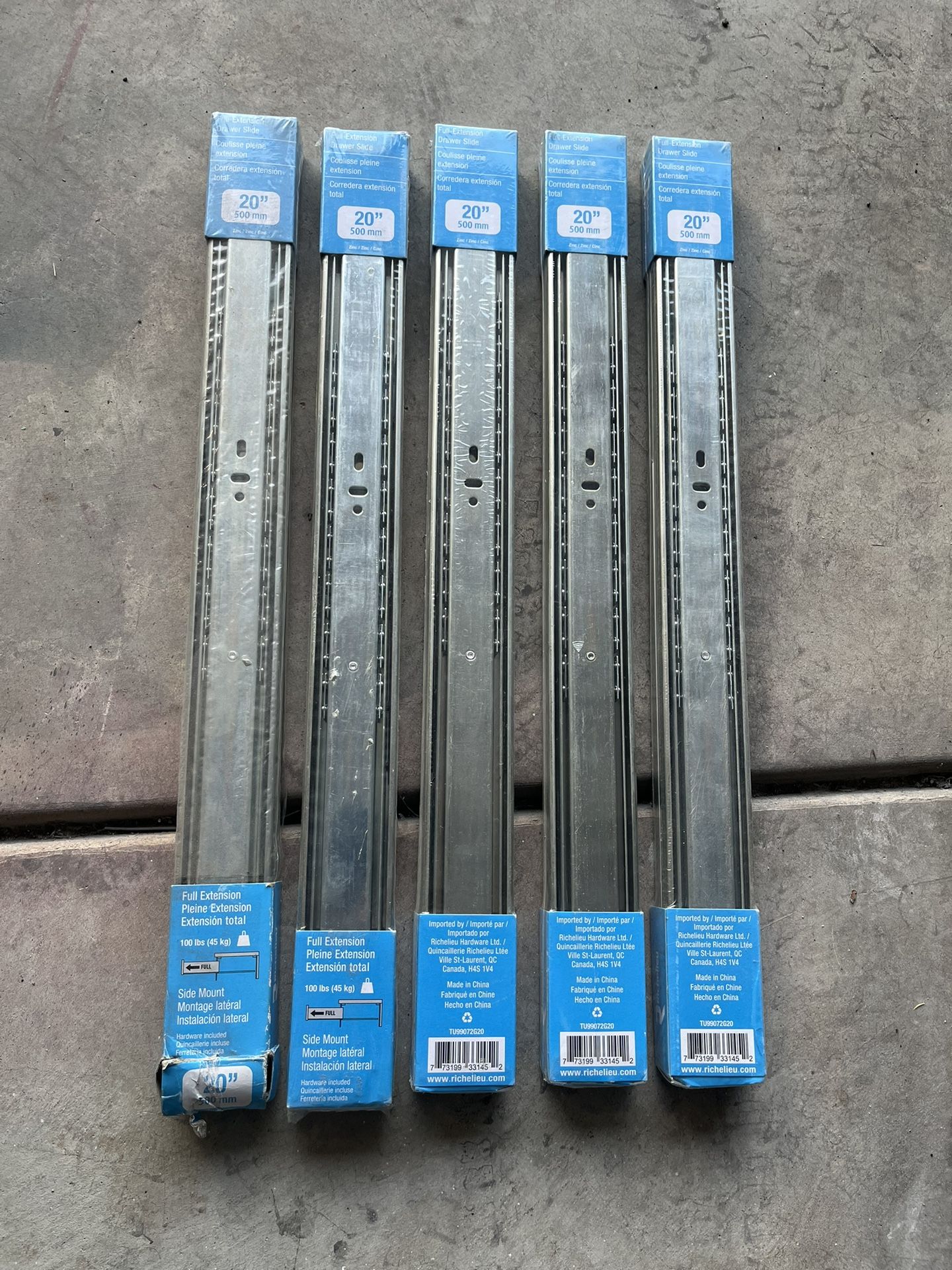 I have 5 sets of new never opened 20inch drawer sliders.