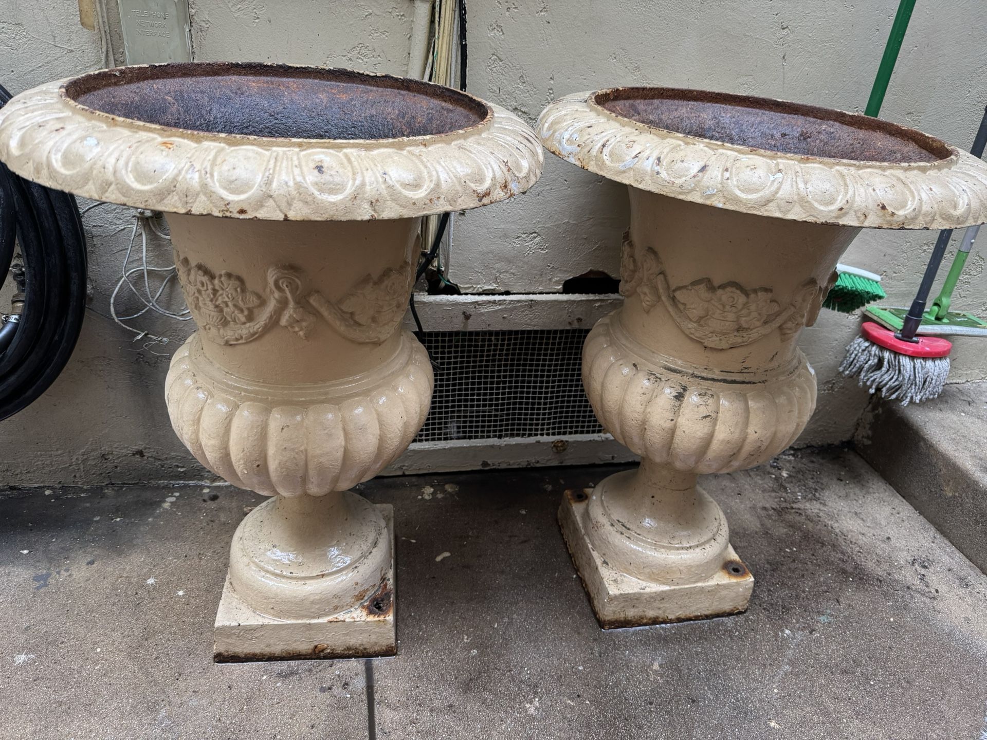 Pair of 30" Large Cast Iron Urns Porch Planters