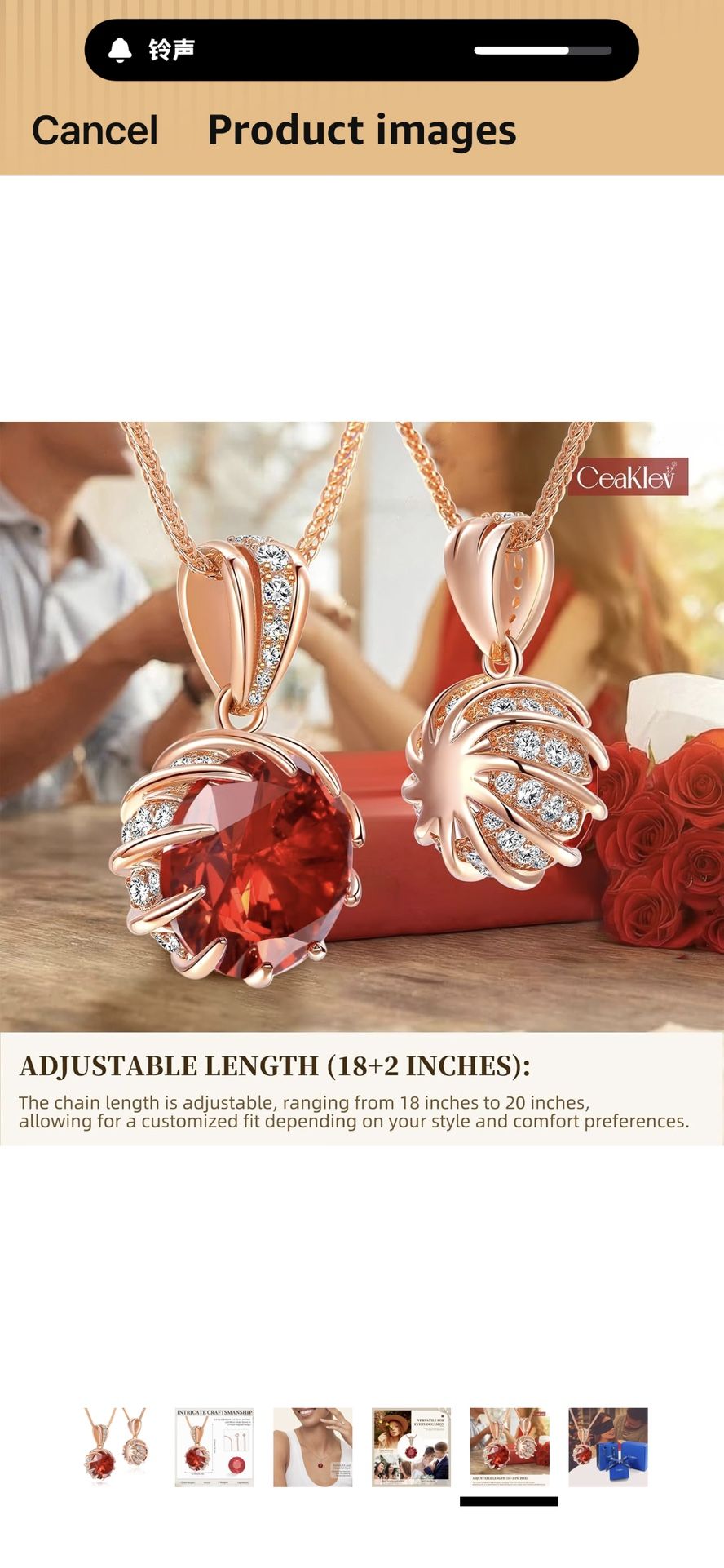CeaKIev 6.0 Carat (12mm) Round Cubic Zirconia Pendant Necklace, 41 Diamond-Cut Accents, 18K Gold Plated Rose Gold, Adjustable 18"+2", Women’s Jewelry