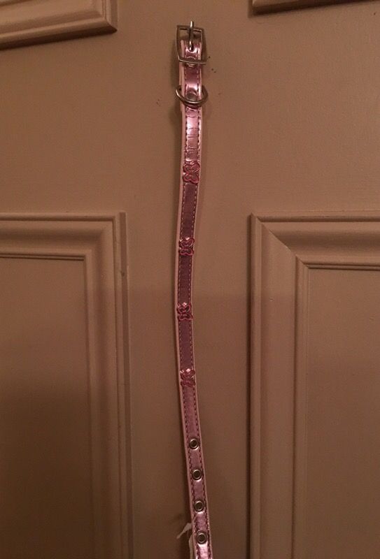 This is a pink dog collar small dog 11 inch to 14 inch for dogs up to 20 pounds with butterfly charms.