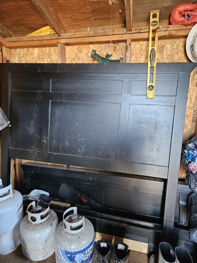 Queen bed frame, no longer in use. Some dents and scratches Screw on foot is slightly bent Need gone asap 250$ obo Will need help to carry
